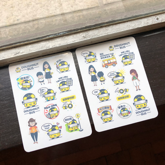 Personalised stickers are great gifts for corporates and individuals. From top left: photo-to-cartoon characters, digitised drawings, named/logo-ed stickers for any occasion or graphics!